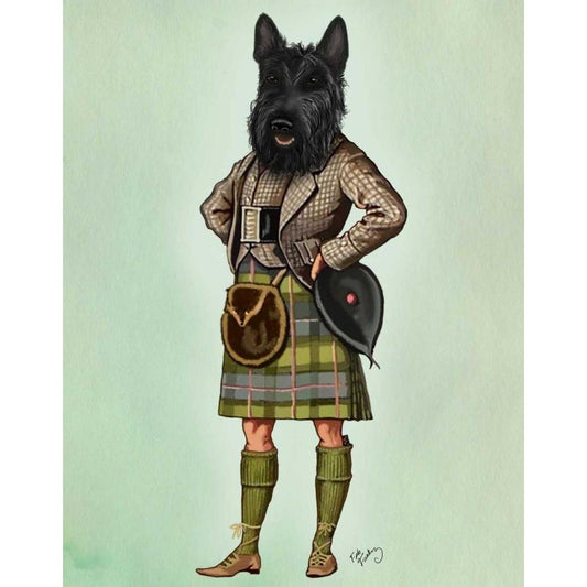 Scottish Terrier in Kilt White Modern Wood Framed Art Print by Fab Funky