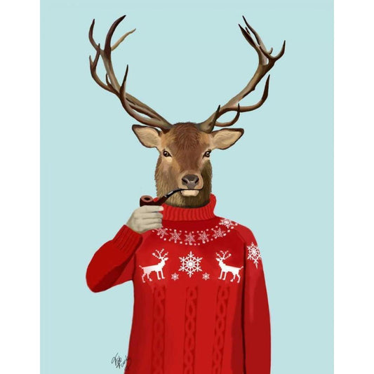 Deer in Ski Sweater White Modern Wood Framed Art Print by Fab Funky