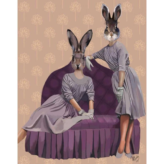 Rabbits in Purple White Modern Wood Framed Art Print by Fab Funky
