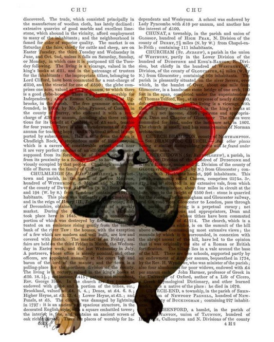 French Bulldog and Heart Glasses White Modern Wood Framed Art Print with Double Matting by Fab Funky