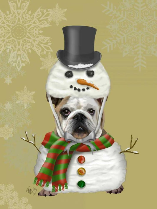 English Bulldog, Snowman Costume White Modern Wood Framed Art Print with Double Matting by Fab Funky