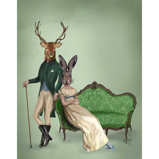 Mr Deer and Mrs Rabbit White Modern Wood Framed Art Print by Fab Funky
