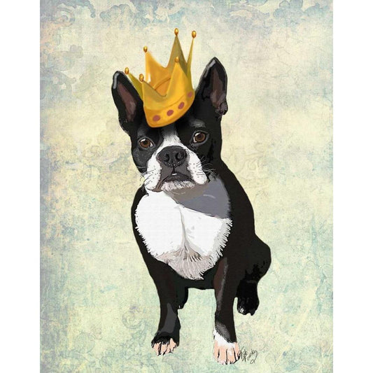 Boston Terrier and Crown White Modern Wood Framed Art Print by Fab Funky