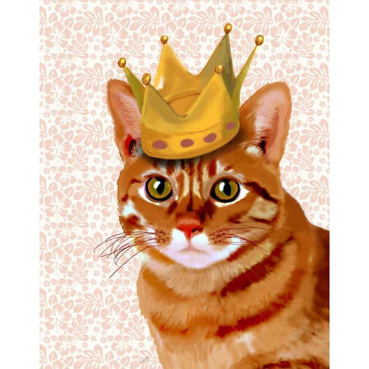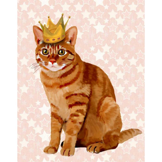 Ginger Cat with Crown Full White Modern Wood Framed Art Print by Fab Funky