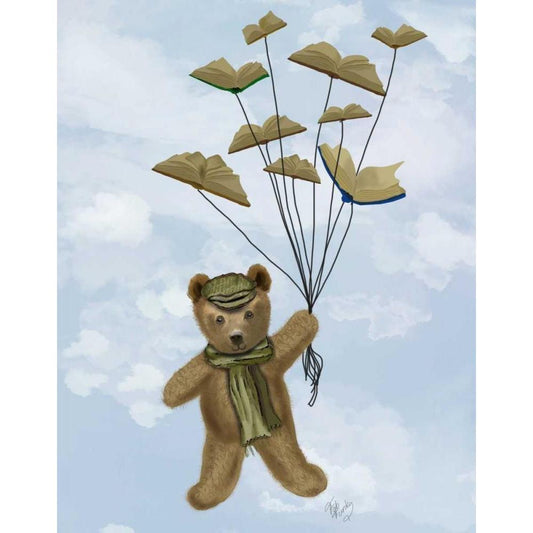 Bear with Book Butterflies White Modern Wood Framed Art Print by Fab Funky