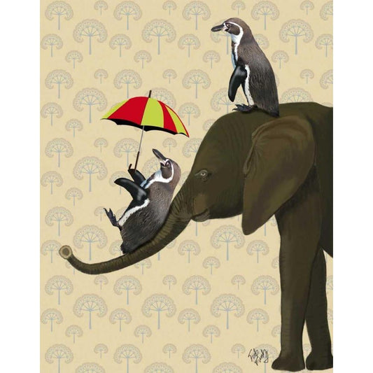 Elephant and Penguins White Modern Wood Framed Art Print by Fab Funky
