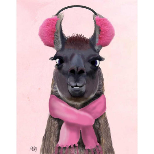 Chilly Llama Pink White Modern Wood Framed Art Print by Fab Funky
