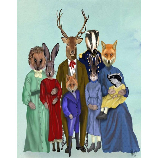 Woodland Family White Modern Wood Framed Art Print by Fab Funky