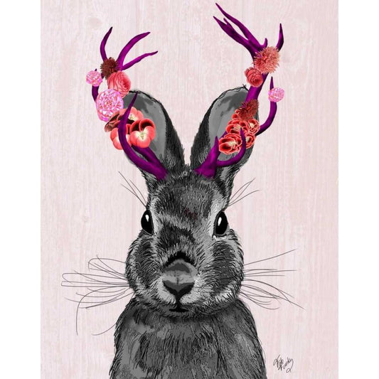 Jackalope with Pink Antlers White Modern Wood Framed Art Print by Fab Funky