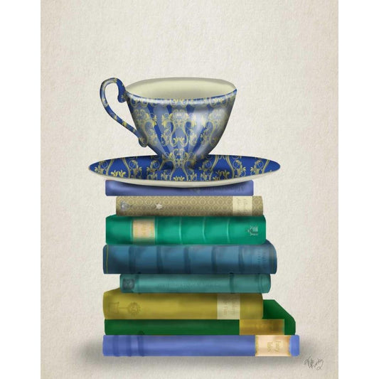 Teacup and Books White Modern Wood Framed Art Print by Fab Funky