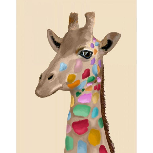 MultiColoured Giraffe White Modern Wood Framed Art Print by Fab Funky