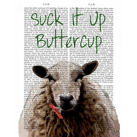 Suck It Up Buttercup White Modern Wood Framed Art Print by Fab Funky