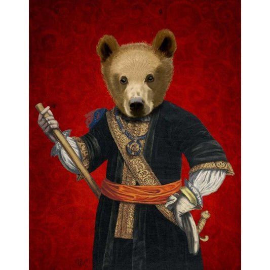Bear in Blue Robes White Modern Wood Framed Art Print by Fab Funky