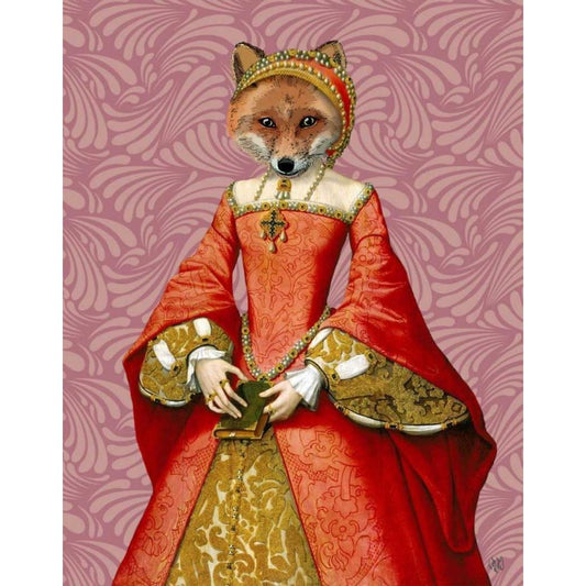 Fox Queen White Modern Wood Framed Art Print by Fab Funky