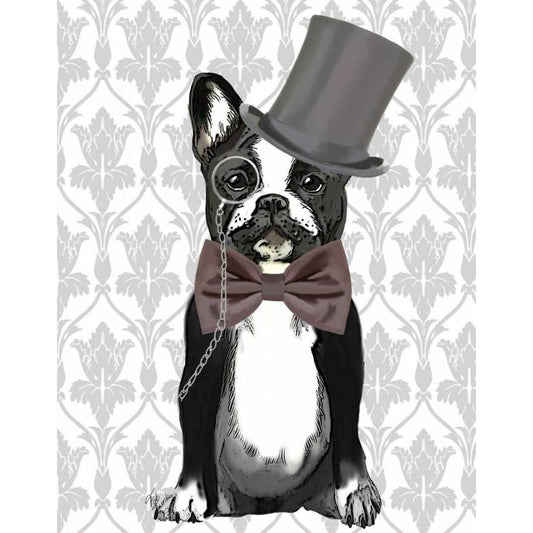 Monsieur Bulldog White Modern Wood Framed Art Print by Fab Funky