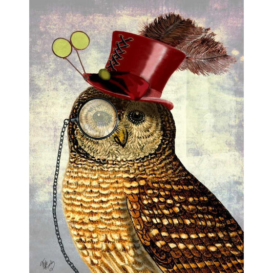 Owl With Top Hat White Modern Wood Framed Art Print by Fab Funky