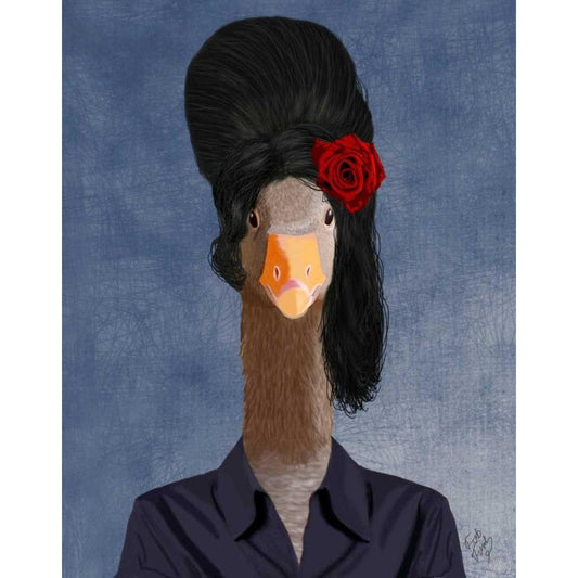 Amy Winehouse Goose White Modern Wood Framed Art Print by Fab Funky