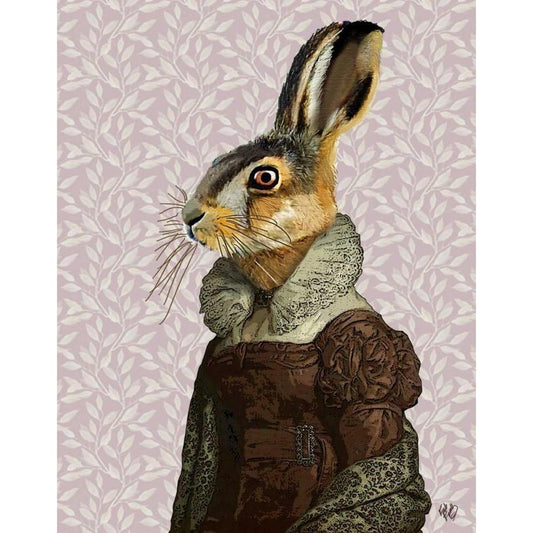 Madam Hare White Modern Wood Framed Art Print by Fab Funky