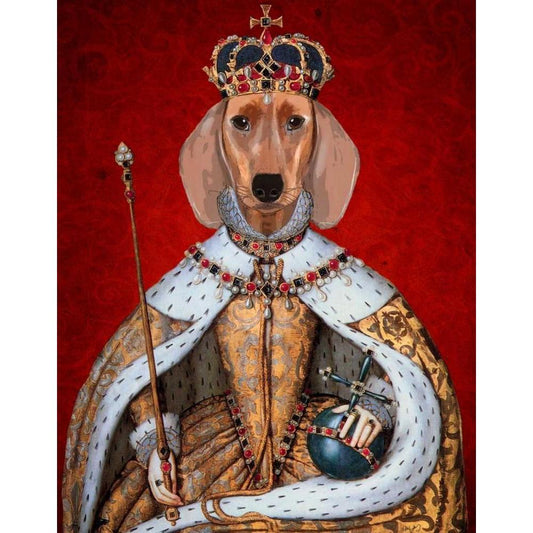 Dachshund Queen White Modern Wood Framed Art Print by Fab Funky