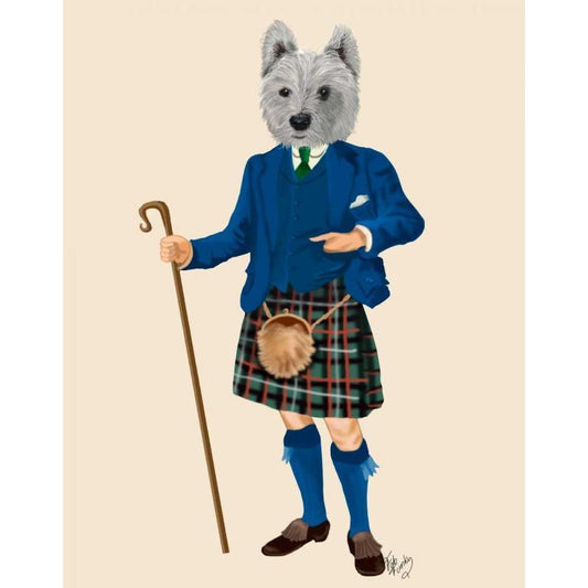 West Highland Terrier in Kilt White Modern Wood Framed Art Print by Fab Funky