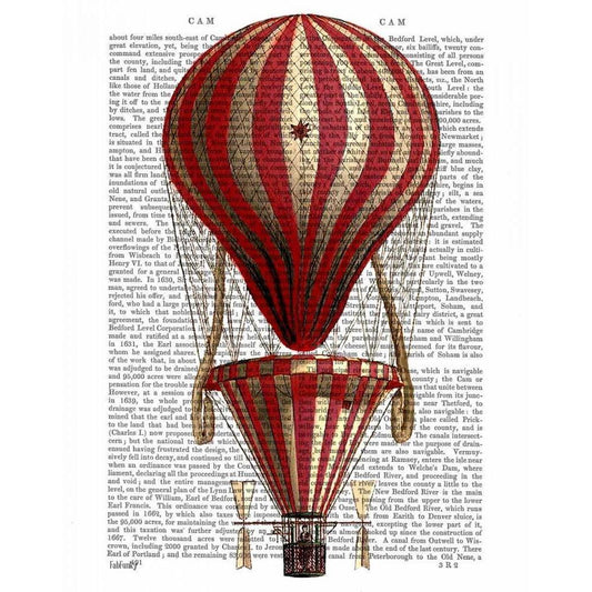 Tiered Hot Air Balloon Print Red White Modern Wood Framed Art Print by Fab Funky