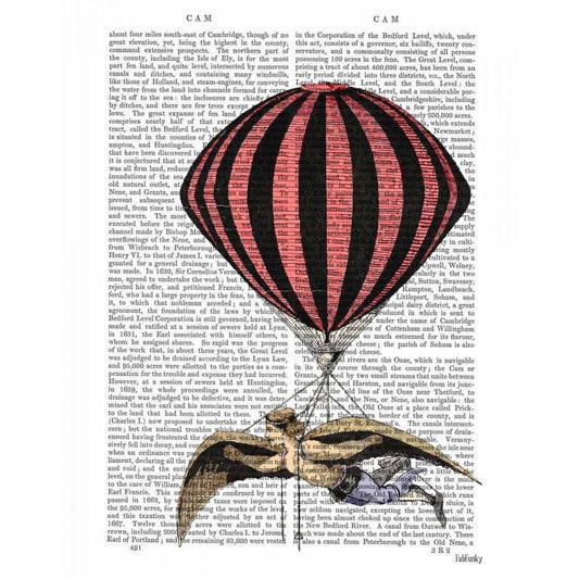 Montgolfier Aerostatique Hot Air Balloon White Modern Wood Framed Art Print by Fab Funky