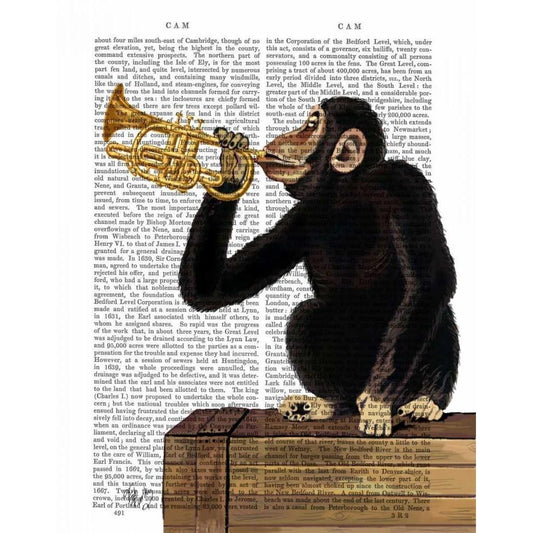 Monkey Playing Trumpet White Modern Wood Framed Art Print by Fab Funky