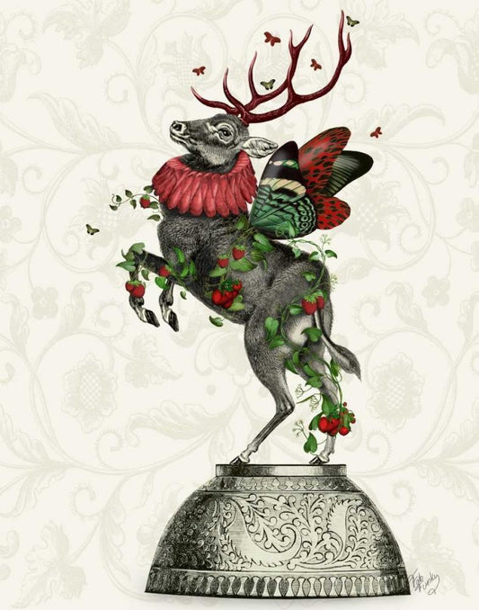 Strawberry Deer White Modern Wood Framed Art Print with Double Matting by Fab Funky