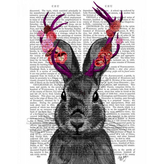Jackalope with Pink Antlers White Modern Wood Framed Art Print by Fab Funky