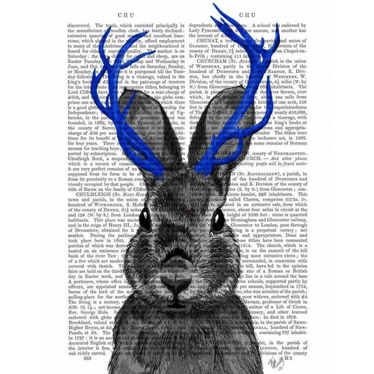 Jackalope with Blue Antlers White Modern Wood Framed Art Print by Fab Funky