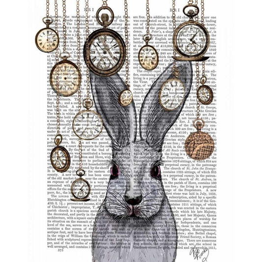 Rabbit Time White Modern Wood Framed Art Print by Fab Funky