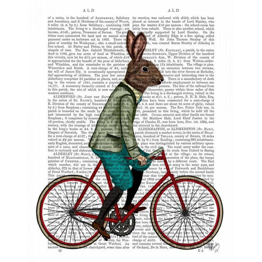 Rabbit On Bike White Modern Wood Framed Art Print by Fab Funky