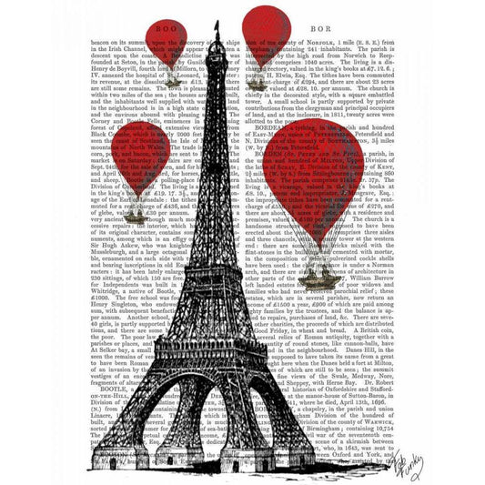 Eiffel Tower and Red Hot Air Balloons White Modern Wood Framed Art Print by Fab Funky