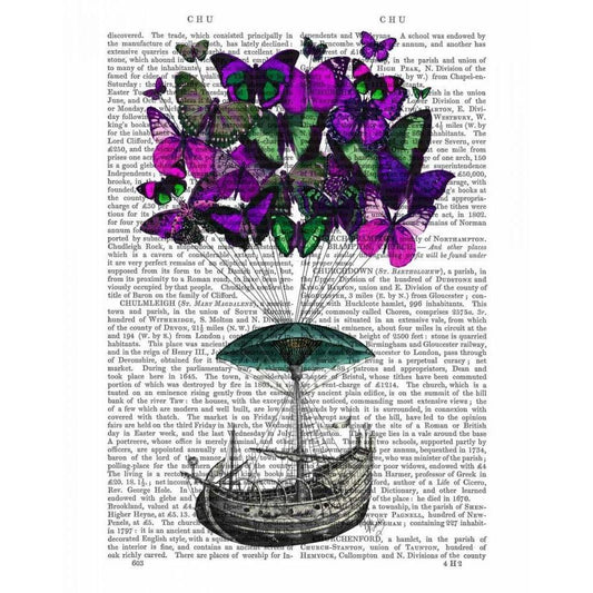 Butterfly Airship 2 Purple and Green White Modern Wood Framed Art Print by Fab Funky