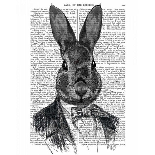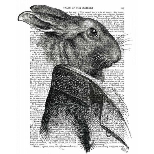 Rabbit In Suit Portrait White Modern Wood Framed Art Print by Fab Funky