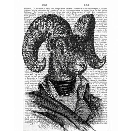 Bighorn Sheep In Suit White Modern Wood Framed Art Print by Fab Funky