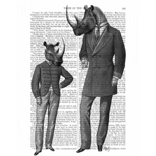 Rhinos Fathers Day White Modern Wood Framed Art Print by Fab Funky
