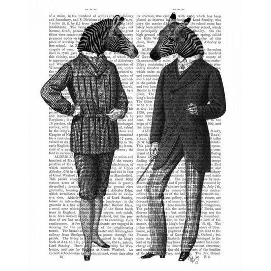 Two Zebra Gentlemen White Modern Wood Framed Art Print by Fab Funky
