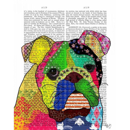 Patchwork Bulldog White Modern Wood Framed Art Print by Fab Funky
