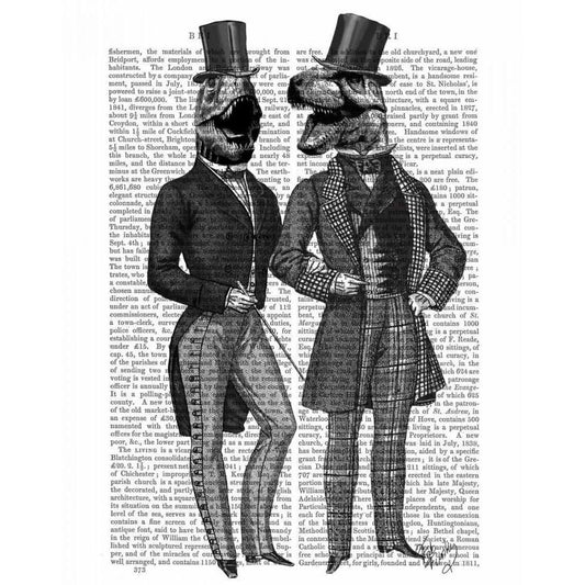 Dinosaur Men Lads Night Out White Modern Wood Framed Art Print by Fab Funky