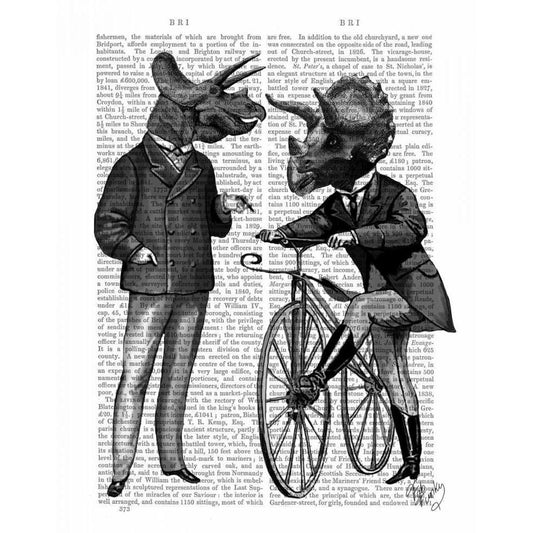 Triceratops Man on Bike Dinosaur White Modern Wood Framed Art Print by Fab Funky