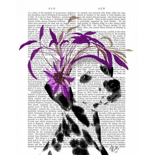 Dalmatian With Purple Fascinator White Modern Wood Framed Art Print by Fab Funky
