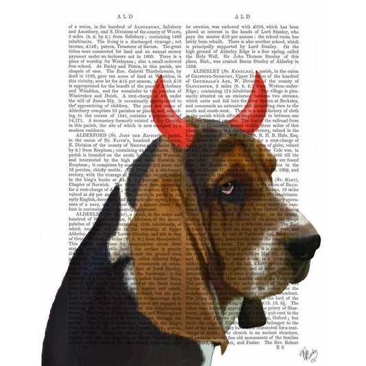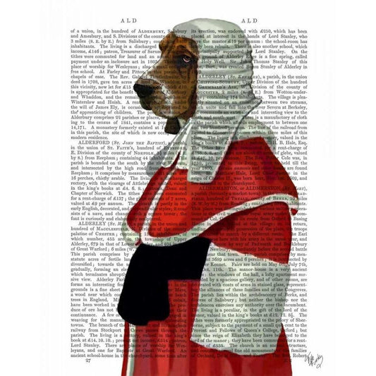 Basset Hound Judge Portrait White Modern Wood Framed Art Print by Fab Funky