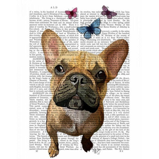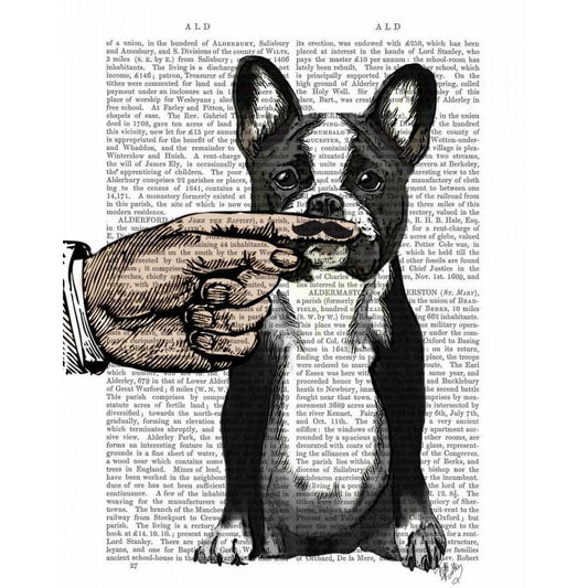 Brown French Bulldog and Butterflies White Modern Wood Framed Art Print by Fab Funky