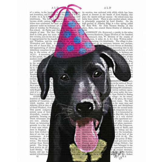 Black Labrador With Party Hat White Modern Wood Framed Art Print by Fab Funky