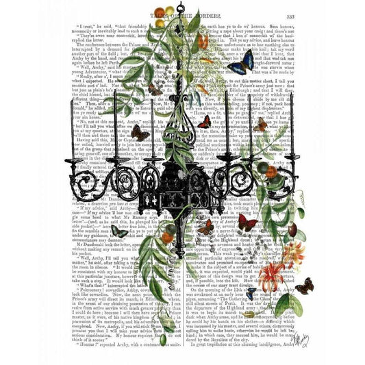 Chandelier With Vines and Butterflies White Modern Wood Framed Art Print by Fab Funky