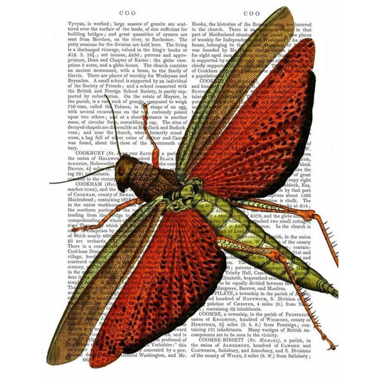 Vintage Grasshopper White Modern Wood Framed Art Print by Fab Funky
