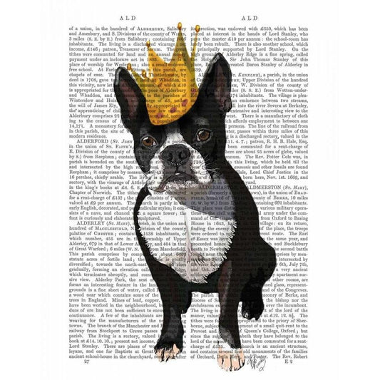 Boston Terrier And Crown White Modern Wood Framed Art Print by Fab Funky