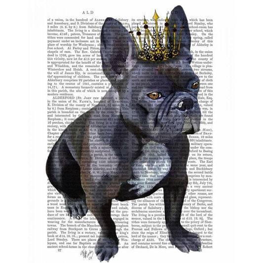 French Bulldog King White Modern Wood Framed Art Print by Fab Funky
