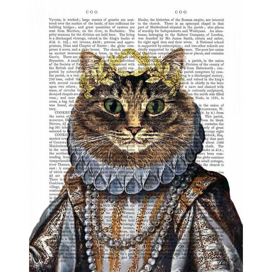 Cat Queen White Modern Wood Framed Art Print by Fab Funky